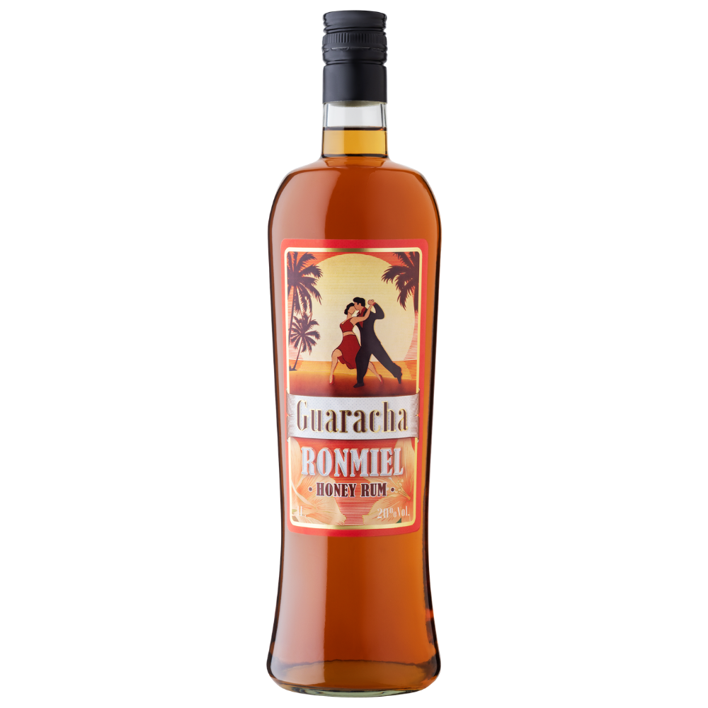 Ronmiel Guarachá 20%. Bebida espirituosa elaborada a base de ron y miel, con un sabor dulce y equilibrado que ofrece una experiencia suave y agradable.